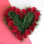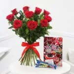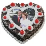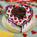 Heart Shape Black Forest Cake 10 Red Roses Bouquet And Love Card