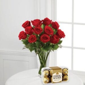Luxury Gold Large 24 Chocolates FREE 6 RED ROSES