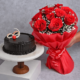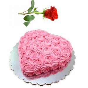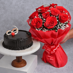 Heart Shape Black Forest Cake 10 Red Roses Bouquet And Love Card